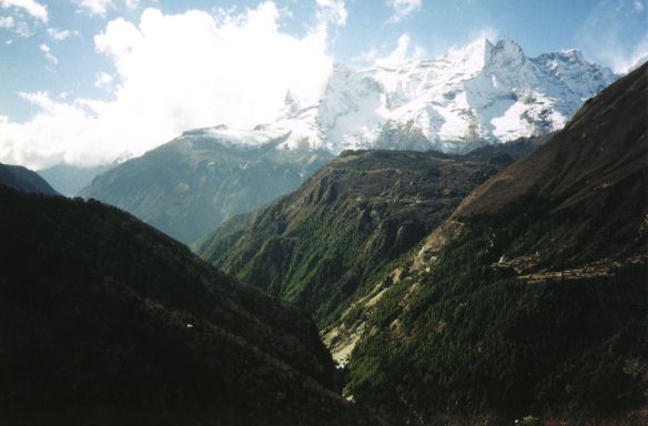 Looking towards Kyangjuma from Tyangboche with Kongde Ri in the background